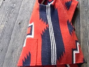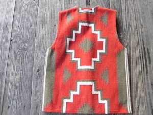 そして名作`ダブルクロス`上はコチニールの赤にTerry`s Green, 下はインディゴの組み合わせ。 初回オーダー会、ベストサンプルが少なく、現物のラグや資料を見ながらのオーダー、逆にイマジネーションが膨らみましたね(笑)普段あまり使わない脳ミソの左側をフル回転、あーでもない、こーでもない、とお客様との話も盛り上がる、そんな中、お店に立って頂いたエリスさんが北村さんのベストを提案、たまたまあったダブルクロスのラグ、サイズがちょうど60X100cm、XSサイズの着丈が58cmなので、ほぼXSサイズのラグを作るときに織るサイズと同じ、そのラグをくるっと丸めて身幅を調整したら柄がバッチリ!バックセンターから両サイド、フロントにくる柄、きれいに収まったのはビックリ!ベストにするとさらに素敵!何とも言えない安定感というか趣というか、偶然から生まれた産物って言うのはここまでしっくりくる物なのか?!これって狙って出来るもんじゃない、まさにIMPROVISATION ! まさにJAZZですね!