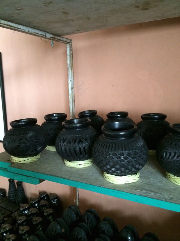 ブラックポータリーは実際、焼きの温度が低いので実用には向いてません。水もダメですし、どちらかと言えば観賞用です。なので細かい技術(穴をあけた模様など)やいかにナチュラルで艶のある`黒`を表現できるか、など日々技術は進化してます。実際、大きな物や柄の細かい物は世界中のコレクター達が探してます。