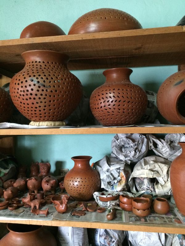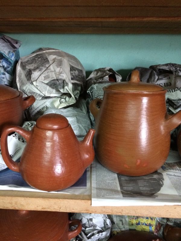 なんだろう、凄く女性的なフォルムというか、丸みが優しいというか、使うことを前提に作られてるというか、美しいんですよ、丸みを帯びた形が!!バロネグロのような芸術性はないですが、生活に根付いてる部分では先のベルデ同様`使ってみたいな`と思わせる、そんな素朴な陶器たちです。特にポットや壷、ジュースなどを入れるのに最適な、暑くて乾燥した土地ならではの焼き物、写真には写ってないですが楕円形の平皿があってフルーツを盛るには最適な(実際、作り手の方もフルーツ用だと)、この赤土の色が果物の色彩をさらに引き立てる、そんな素朴な土の色そのものの陶器達、模様や色がついてない、素の姿、な〜〜んか良いですよね、何が良いの?と聞かれても困りますが(笑)実際、値段を付けて販売するにしても、そんなに高いものではないので、是非生活の中にこんな素朴な陶器を取り入れてみても面白いのではないでしょうか? こつこつ集めてフェニカで販売お願いしたいと思います!(願!)よろしくお願いします!(願!)