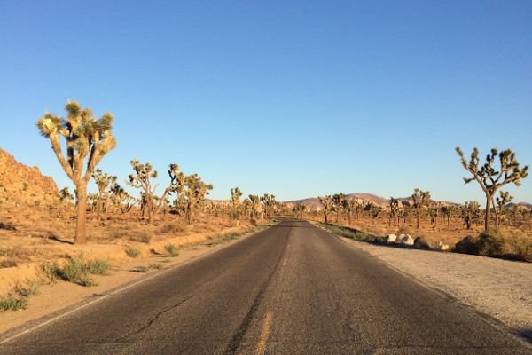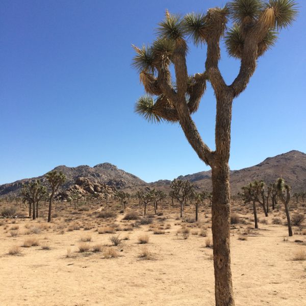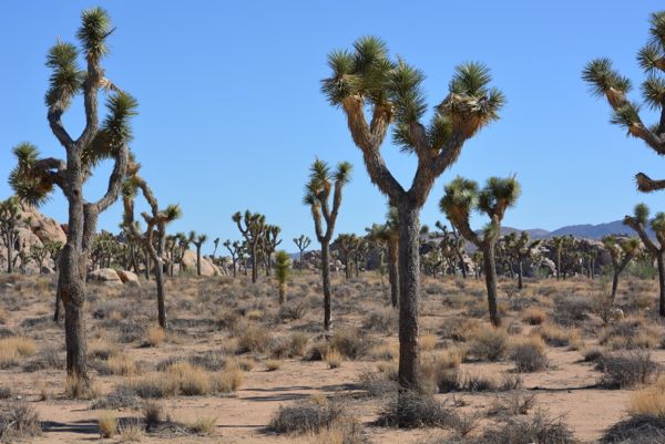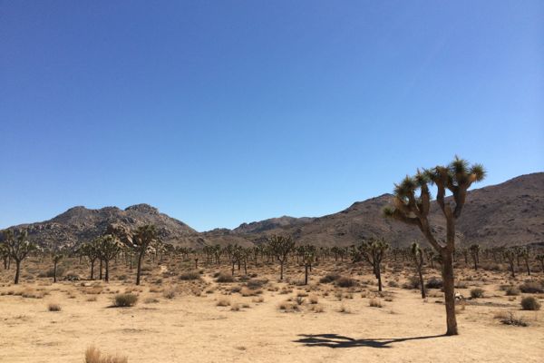 どんどん奥にいくほど、ジョシュアツリーがたくさんあります。標高1000mほど、砂漠の中ですがやや風が心地よいです。