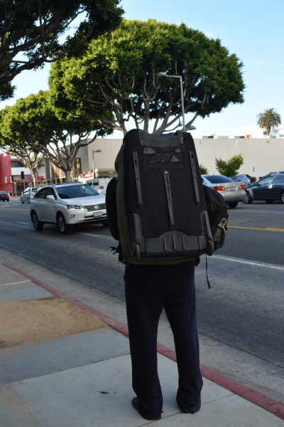 SANTA MONICAで遭遇したホームレスの男性、PATAGONIAのトラベルバックを背負ってた。。自分とお揃い、どこでどうやって手に入れたんだろう?