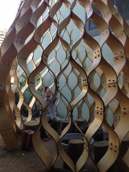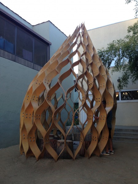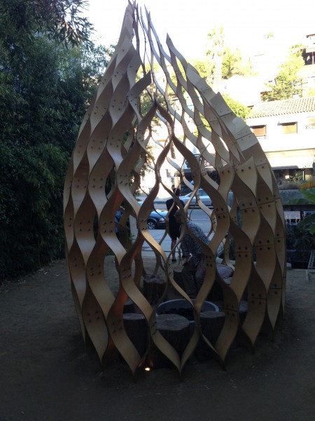 これにはヤラれましたね!真剣に`欲しい`と思いました(置く場所が無いので諦めも早かった。。)カリフォルニアの家具といえばプライウッドのイメージが強く、丈夫で加工し易い、こんな曲線でキャンプファイヤーをイメージしたアート、中に入って実際たき火も出来る、こういうのをバックヤードに置きたい!