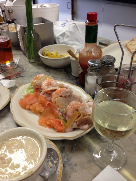 ここうまいんですよ、シーフードが新鮮で。ただ、ランチタイムは1時間ほど並ばないと入れません。営業時間も10:00AMから5:00PMです。100年続く老舗でPOLK Stにぽつんとある、地元の人に愛されてる、基本魚屋なんで新鮮なシーフードを買いにくる人も多いです。フィッシャーマンズワーフよりこちらがおすすめ。