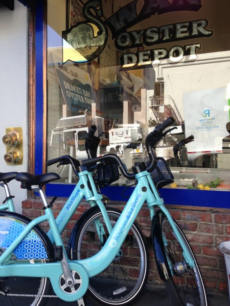 今回初めて、サンフランシスコ市内の数カ所で見かけた`シェアバイク` 要所要所にステーションがあってクレジットカードでレンタル料、デポジット(万が一、返さなかった場合、自転車の代金ぐらいの金額)を支払い、A地点で借りてB地点で返す、返した際にデポジットが戻る、そんな素敵なシステムが誕生してました。観光客とか地元の人であれば駐車スペースを見つけるのが困難なサンフランシスコ市内、流しのタクシーもほとんどいない、まさに理想的なシステムだと思いました。