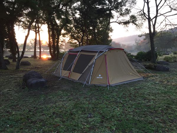 我が家、自分で立てた家(笑) 夏のキャンプはテント+タープの開放的なスタイルもオススメですが、秋キャンプは1体型シェルターが気分、ベットルームとリビングルームが一体になってるので、以外とテントの中は暖かいのです。