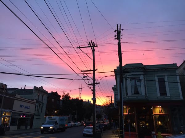 霧と夕日の街、When the lights go down in the city, And the sun shines on the bay ~ Do I want to be there in my city, Oh,, ~~ 有名な歌にもありますね。夕日が美しい西海岸、その中でもサンフランシスコの夕日は格別、運がよければ霧と混ざって幻想的な景色が見れます。