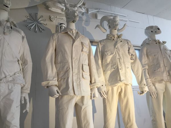 ハンティング、フィッシング、マウンテニアリング、サイクリング、サーフとテーマごとの服をまとった白いスカルヘッドたち。圧巻です。わざわざ白い生地を使って作られた服を纏ってます。一見、塗ったのかな?と思いましたが、近くで見るとちゃんと作り込まれてる服たち、単にペイントしたものとは存在感が違います。