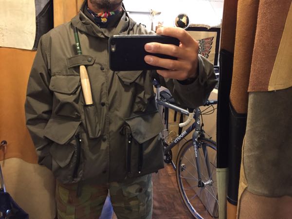 いっちゃいました(笑)金剛とテンカラパーカ、まずは形から。このテンカラパーカ、着丈が短くポケットたくさん、まずは自転車に丁度いい。もうこの歳になったら、家族もいるし、そこまでモテなくてもいい(もともとモテないですが。。)、自分が気持ちいい服を着る、基本洋服屋なんで、自社で扱ってる商品を着ますが、この辺のアウトドアアイテムはパタゴニアやアークテリクスを買ってました、が、あまりにも街中で着てる人が多い(そんだけ機能的で良い物ってことですが)ので、アウトドアブランドを街中で着るのは最近抵抗があったのです。 そこでこのテンカラパーカ、ちゃんとした機能を備えながら(フィシングジャケットとして)ファッション性にも優れてる、パタゴニアやアークテリクスが好き、良い物として認めてる、けど街中でカブるのはいや、そんな人たちに是非オススメです。さすがに竿はアクセサリーになりませんが、、、早く使いたい!