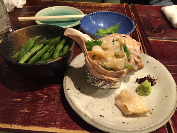 もう、何食べてもうまい、胃袋が鍛えられてる(笑)酒の中でビールが一番好き、特に北海道限定、サッポロビールがうまい!軽くてさっぱりしてる飲み口が乾燥してる大地によく合うんですね。だいたい、居酒屋の定番メニューで貝類刺身があり、大好きなんで全てツボにはまります。
