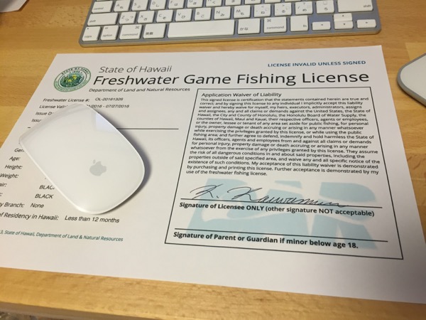 まず、自分がやりたいのはなんといっても釣り!テンカラ!インスタで上がってくる北海道の方々の見事な釣果を見てウズウズしてるのです!じゃあ、北海道行ってやれば?そうなると家族会議で反対多数、、ハワイでテンカラデビューする事に!まずは免許。