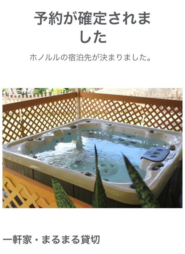 Airbnd、Airbrekfastandbedの略、2008年8月に始まった新しいサービス、ホストとして登録すると、ゲストとの間にAirbnbが入り、カード決済、いろいろ制約もあり、英語力がないとちょっと厳しいところもありますが、4人以上、4泊以上するのであれば、ホテルよりお得な物件にであることが多いです。ただ、ホノルル、ワイキキの相場から見て、安すぎるところはそれなりかも、、安心という意味では旅行代理店やちゃんとしたホテルを取った方が良いですが、今回の旅はアドベンチャー!キャンプしたい気持ちを抑えきれないので、庭付き一軒家に!こんなジャグジーついてるし、バーベキューグリルあるし、ベッドルームも3つあるし、山の上だし、この値段だとかなりお得感、ただし、まだ大家さんとは連絡取れてない、、おそらく直前、そういう意味でも自由な旅にはネット環境が不可欠、よかった〜〜アメリカ放題再開してくれて(笑)