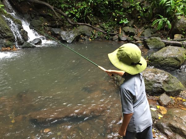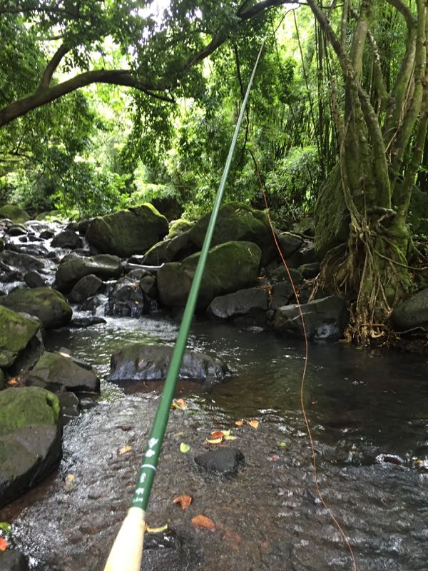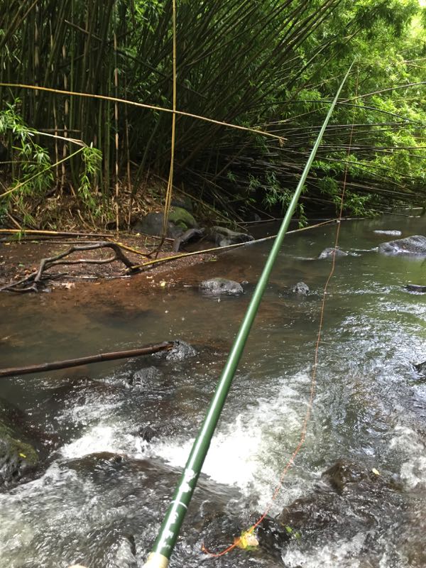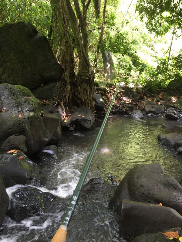 3時間ほど粘ってみましたが、ダメでした。。ボウズ。。テンカラデビュー戦は敗退でした。 釣れなかったですが、ハワイのまた違った自然を楽しめ、そこで竿を振れたこと、自然の中で魚と向き合い`無`になれた、これが集中力なんだなと、改めて実感、人間の集中力って1日3時間ほどが限界だと、仕事もそうですが、企画とか、いわゆる集中する仕事って1日3時間ほどが限界なんですね。釣りしてよくわかりました。集中力を高めるには好きなことに没頭する、その時間が大切なのかと。やっぱ、よく遊んでる人って、仕事できる人が多いんですよね、自分の周りには。切り替えや集中とか、そういうことなんだなと、釣れなかったけど、この時間はとても良かった。(釣れたら脳内アドレナリンが分泌されてもっと良かったのだけど。。。)