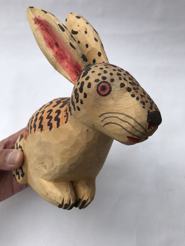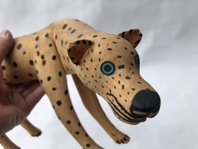 手に入れる必要性とは、ウッドカービングの歴史を知るにあたり、やはり一番の巨匠、マヌエルヒメネス作品を実際所有し、使われてる染料、絵付け、作風など写真ではわからない、細かい部分を知った上で、今の作品を昔風に作るアイデアソースとして、貴重な資料として、どうしても所有する必要性がありました。