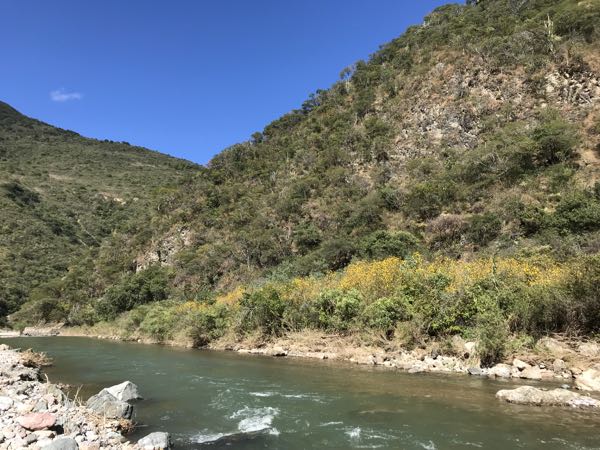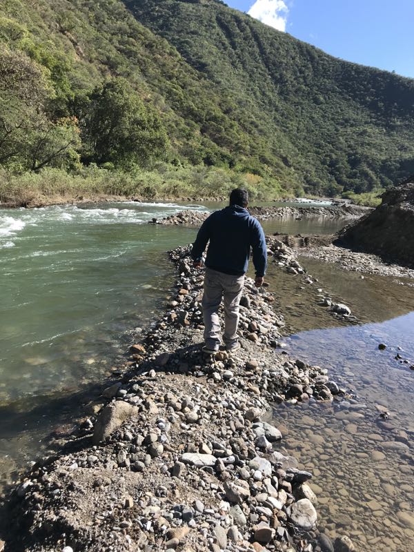 メキシコ、オアハカは雨季と乾季があり、今はちょうど乾季、川の水も程よく、唯一、車で近くに行けるところは数箇所のみ、この時期は水を汲んだり、石を削り出したり(オアハカには石畳の道路や広場が多く、実際、重機を使わず、人の手で石を補修、その石がこの辺から採取されてる)、何かと川沿いが忙しい時期。