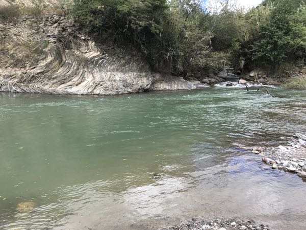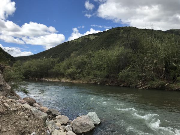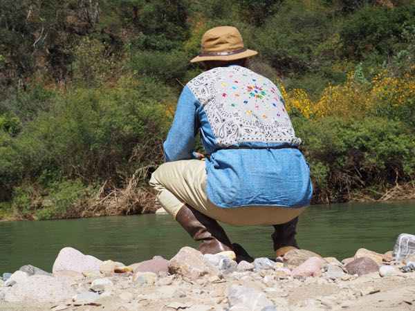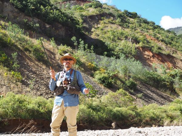 フライボックスを見せたところ`あかん、あかん、そんなプラスチックのおもちゃじゃ釣れんわ` と、いきなり林の中に走って行ったと思ったらバッタを捕まえてきて`これで釣ったらいっぱつや!``みみずでも釣れるで`と。ウルトラライトイエローストーンの本で読んだけど、乾季の川、普段川底の石や林にたくさんバッタが孵化し、ニジマスの大好物だとか。バッタを食べて育ったニジマスは強力で大きくなる。貴重なタンパク源。アミーゴいわく`俺らもバッタ食べるで`確かに`チャプリネス`というバッタを食べる文化がある。山岳地帯で暮らす先住民族の貴重なタンパク源。ニジマスも人間も同じだ。