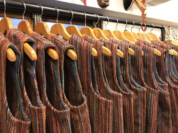 天然染色で表現できる色は約60色ほど、その中でも実際にラグに使う、よく使う色は約40色ほど。全ての色を使い、1本1本細かいストライプ`MIL RAYAS `を作り出したのはまさに家族のセンス、そこに惚れ込んで、ベストを依頼、出来上がったベスト、たくさん色をつかってるが、実際着てみると、これが絶妙なバランス、シンプルにバスクシャツやデニムに合わせたり、セットアップのアクセントでインナーに着てみたり、パタゴニアとかアウトドア物に手仕事のラグベストを合わせてみたり、デザインで主張してるのではなくオアハカの`色`で主張、色を着る、合わせやすいがインパクトのある1着です。