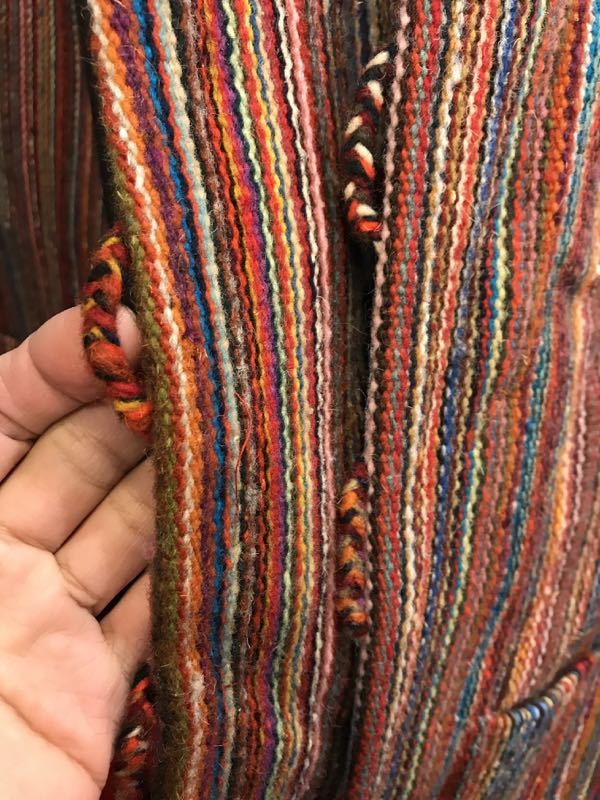 もともと、ラグであった柄、素晴らしい色合い、シンプルなストライプながら、天然染色で染めた糸をふんだんに使い、織り手のセンスで色を組み合わせていく。技術だけじゃなく`センス`を問われる仕事。