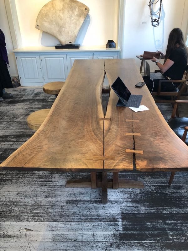 この空間で見るナカシマの家具は最高でした。基本、家具は色々買ってきたので、好きなんですが、手に入れようとは思わない。唯一、手に入れたいと思うのがジョージナカシマ`フレンチマンズコヴ`ブックマーク型のダイニングテーブル、高松`桜製作所`製のアメリカンウォールナットがいい。それにイームズのシェルチェアやメキシコのスツール、オアハカのラグがあればいい。子供達が大きくなって家を出たら買おうかと思ってる。そんな矢先にこのミラ ナカシマ作の`フレンチマンズコヴ`を見せられた。。。いや〜〜カッコイイ!自分の中でナカシマを超える家具はないのです。これが最終着地点。ビンテージじゃなくて現在進行形がいい。