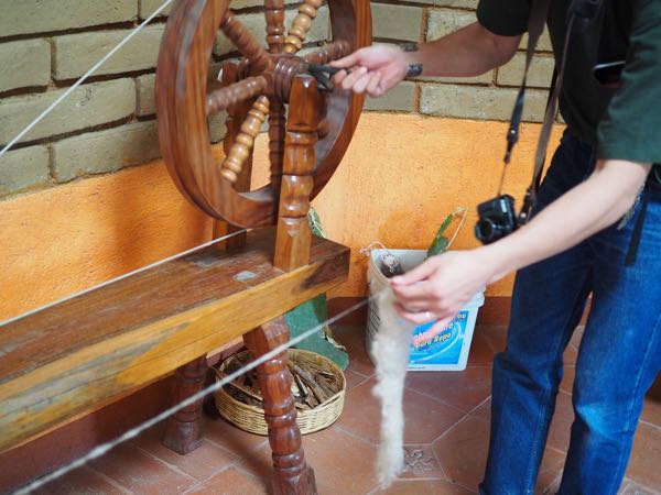 物作りの現場を確認、そして体験。これ非常に大事。ラグベスト用に紡いで貰ってる糸の細さなど、しっかり説明。現場を見てもらうのが一番。本当はお店のスタッフ全員をここに連れてきたい、ですが現実的に無理なので、しっかりバイヤーさんとマネージャーさんに伝えてもらいます。