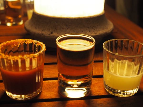 テキーラも。3年以上、オークの樽でねかせた、アニエホ。チェイサーのサングリータに塩とチリ、そしてレモン果汁、ゆっくり、少しずつ、舌の上で味わいながら、飲みます。実に美味い。