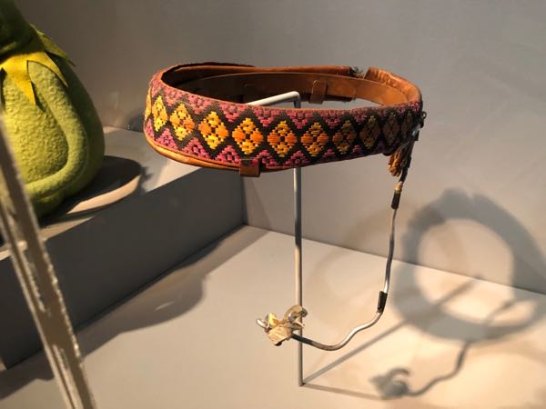 ジムヘンソンさん愛用のヘッドマイク。70年代らしい、レザーに織りテープがフォークアートな出来栄え。手作り感が何とも言えない、味わいがある。