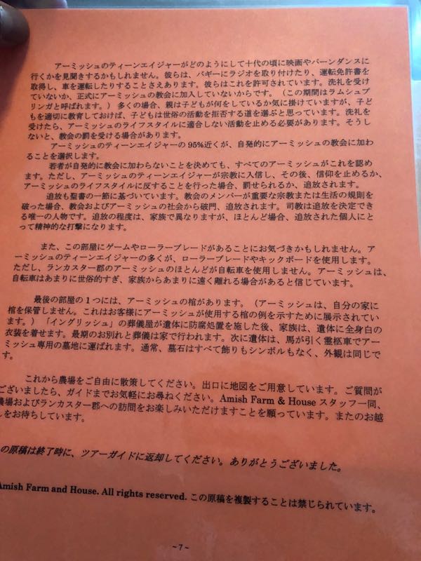 SNSで一生懸命、自らの私生活、友人や家族、子供、家まで全てを曝け出し`いいね`の為、お金の為に生きてる人が多い中、こんなシンプルで素朴な生活もあるんだなと。今の時代、SNSで伝わるのも早いが、忘れ去られるのはもっと早い。300年以上、アメリカでこういうライフスタイルを営んでる、そして実際アーミッシュの人口は増え続けてる、ツアーに参加して驚きました。