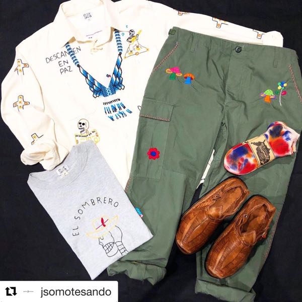 オアハカを始めるきっかけが、1970年代、カリフォルニア、バックパックムーブメント、トレイルを歩いたり、お隣の国、メキシコの自然や文化を感じたり、長期滞在中に、着てきたであろう、シャンブレーシャツや軍パン、Tシャツに、現地の職人さんに刺繍をしてもらった、そんな服が今、着たくて、はじめました。周りになかったしね、乾いた感じの、アメリカっぽいけど、なんか70年代の匂いやヒッピーライク、アジアやヨーロッパではない、刺繍のテイスト。