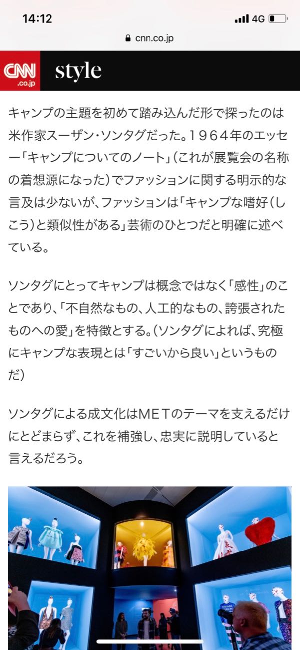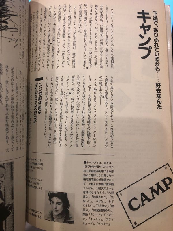スーザン ソンタグの名前を見たとき、ふっと、中学2年の時に買った、メンズクラブ別冊`キーワード`のキャンプのページを思い出しました。この展示はみたいな〜〜と、でも、会期中にMETに行くことは無理なので、HPの動画で充分楽しめます。