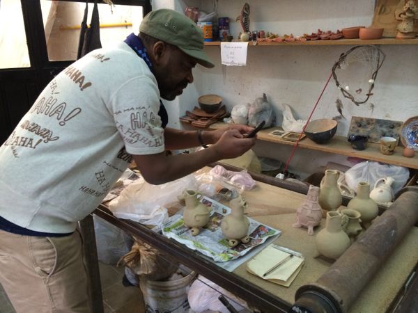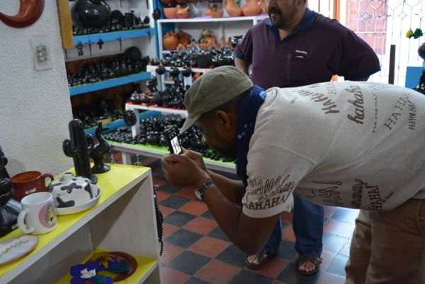 同じ陶器でもメキシコで有名なセルビン焼のお店にも行ったのですがあまり反応されず(どちらかと言えば観賞用っぽい、金持ち白人が好きそうな感じ)普段使いの陶器に興味津々、屋台でココナッツジュースやフルーツジュースを売り終え、後片付けをしてるおばちゃんにやたら反応されてるのでどうしたのか?と思ったらそのジュースを入れてる瓶のような大きな陶器、TerraCotta風の焼き物に緑の釉薬がかかってて`すばらしい!`早速写真に収められてました。確かに言われてみれば街中至る所で普通に使われてる、そんな`用の美`を一瞬で見抜いてしまうTerry`s EYEに自分も反応してしまいます。