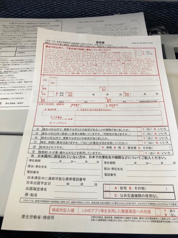 質問票。もちろん、正直に答えます。大きく`Y`イエス。