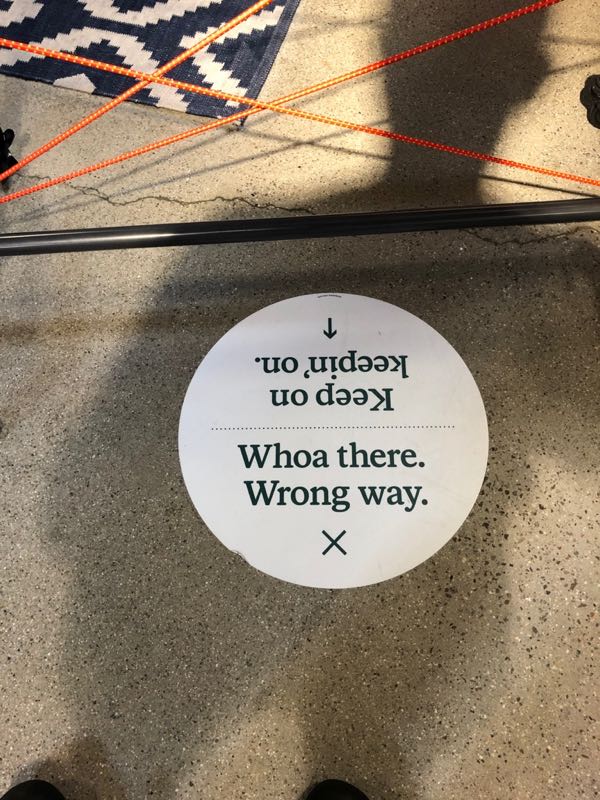 ほんの半年前は一切見なかったサイン。こういうところに、センスを感じてしまう。ロープの貼り方、表記の仕方、など威圧感を与えるのではなく、和ませる、そしてそこに笑いのセンスも大事だと思う。何気ない日常が大きく変わっても、変わらない気持ちが大事なんだと思わせてくれた。