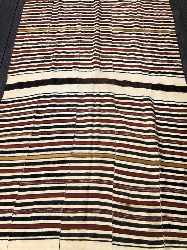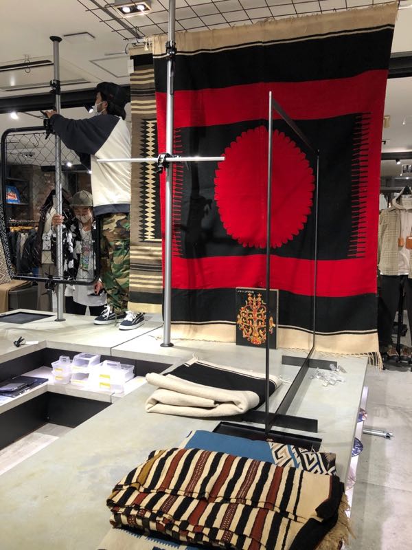 たまたま、タイミングよく、同じコレクターから手に入れた。ちょうどディスプレイ用に前のオーナーがカスタムしてたので、飾りやすかった。背景を作るようにラグをディスプレイ、ビンテージのラグならではのウェイト感というか、ヤラレぐらいというか、絵になります。