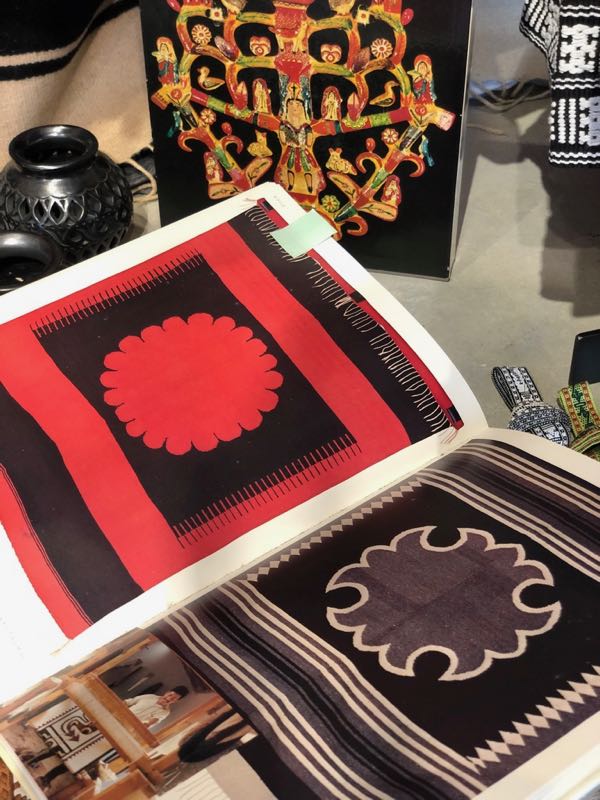 ラグがあるだけで、こんなに違うんですね。オアハカ のイベントにラグは欠かせません。ビンテージから現行品まで、その進化が興味深い。資料もちゃんと用意してディスプレイ。