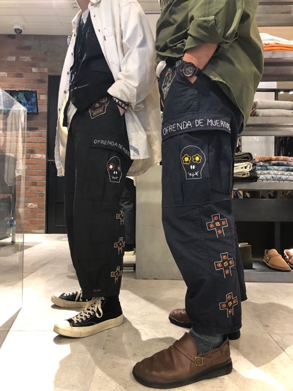 嬉しいカブリ。結構ありそうでない、刺繍軍パン。トップスにリアルな軍モノで、ボトムスはこんな遊びで。