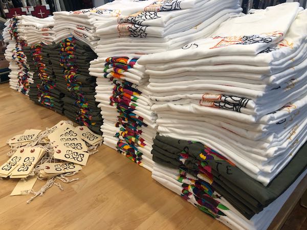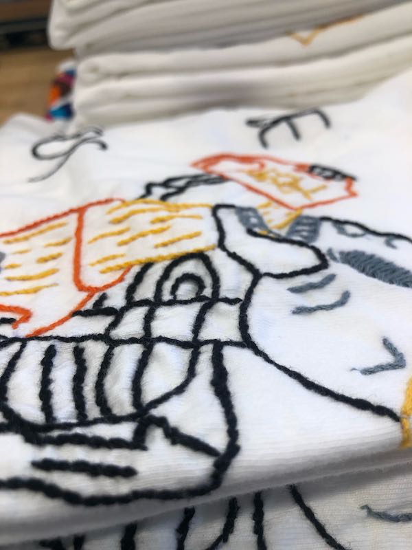 毎年、人気のある手刺繍Tシャツシリーズ。例年であれば、別注頂いた分や展示会でオーダー頂いた分を含め、400〜500枚のオーダーをする。約半年の生産期間でできる数量として、ちょうどいい数。