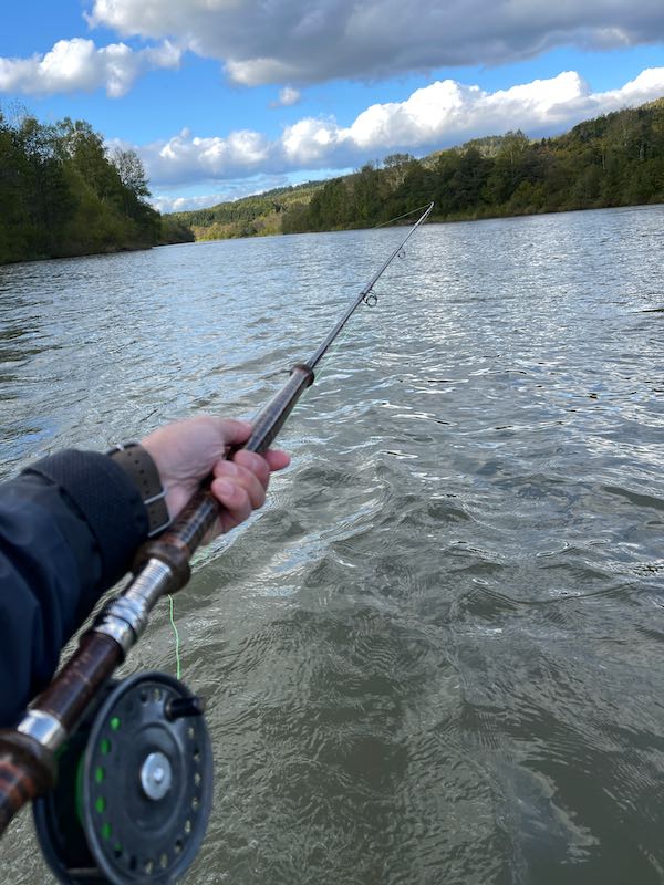 これ面白い、トラウトスペイ。300Gスカジットヘッド、25mランニングライン、片手で投げるスペイ、軽快でいい。ウエットフライの釣りが一番好きかも。水面直下で起こる、引き込まれる感覚が味わいたいな、来年6月はこれで中規模河川でヒゲナガ、ウエットの釣りがいいかも。