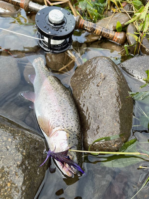 こんなのが釣れちゃうと、全てリセットされる!嫌な記憶が全て吹っ飛んで、これからは地球温暖化について、できることからコツコツやろう!ゴミは絶対捨てない!思い出だけを持ち帰り、足跡だけを残す!生態系を変えてはいけないから、ウェーディングの際、フェルトソールはやめて、ビブラムソールのブーツにしよう!など、またこれも自分に都合のいい事しか考えなくなる。ほんと、つくづく都合のいい釣り人だと思う。