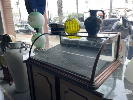 アンティークショップも時間が許す限り、のぞきます。このショーケース、値段も安く、よかったけど、これ以上置くとこないし、エッチングの文字がイマイチでした。