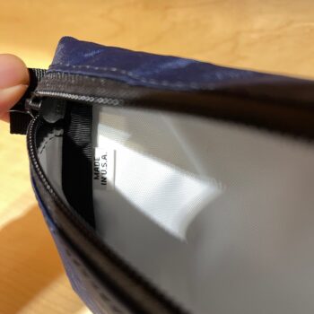 主に小物類、ポーチなどを手掛け、素材はEcoPak 200EPX、リサイクルペットボトルから作られた、SDGsなアウトドアファブリック。高性能なバックパックにも使用される贅沢な素材。ライナーに1200Dコーデュラナイロンを使用。小さいながらもハイスペックな素材を使い、ガレージで縫製、なんとも言えない手作り、粗削りな感じがして、アウトドア黎明期を彷彿させる。