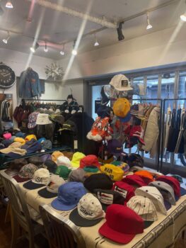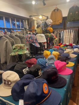 毎週テーマを決め、商品を投入するLIOT、初回はヘッドウェア。アメリカ製キャップ、企業ロゴ、など盛りだくさん。