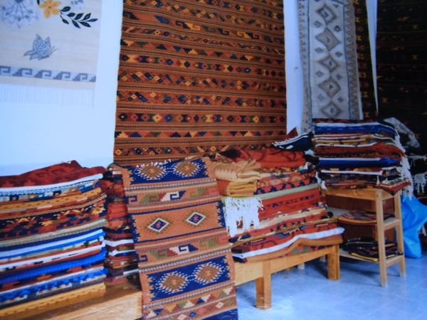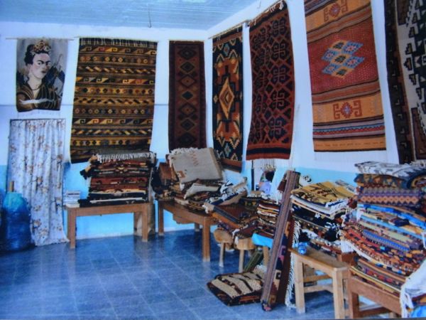 2003年頃、バスケスファミリー本家の写真。バスケスさんの子供達が織ったラグが積み上げられてます。ここで全て生産&販売されてました。
