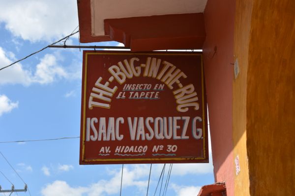 オアハカ、ティオティトラン デル バジェ、ラグの産地で有名な村、数ある工房の中でも世界的に有名なのがIsaac Vasquez Garcia アイザック バスケス ガルシアさん率いるVasquez Family の`THE BUG IN THE RUG` 工房名は直訳すると`ラグの中の虫`この虫というのはサボテンに着くカイガラムシ`コチニール`の事、オアハカの特産品であり古くからの交易品に使われ、様々な民族衣装の`色`を表現してきた大事な色素であるコチニールの`赤`オアハカをイメージする際、真っ先に思いつくのが太陽の赤、天然染色にこだわる同工房でもコチニールの赤とインディゴの青は非常に大切な色です。